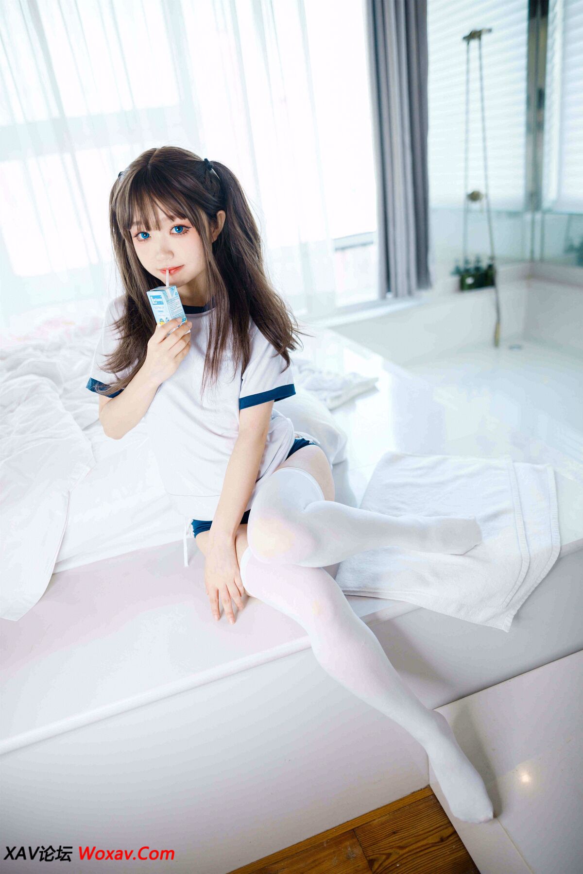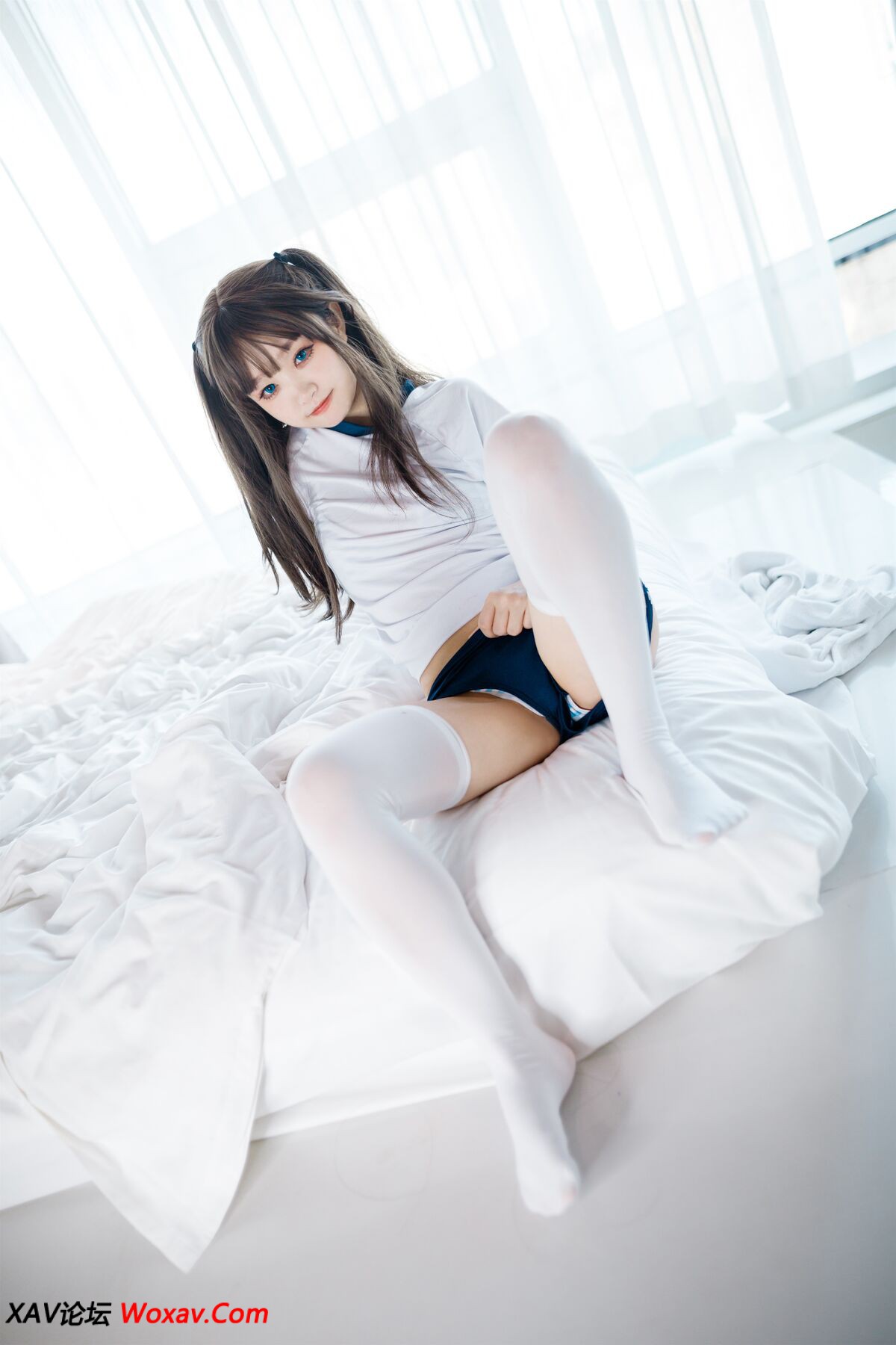 Coser@神沢永莉 – 半双马尾体操服大腿袜